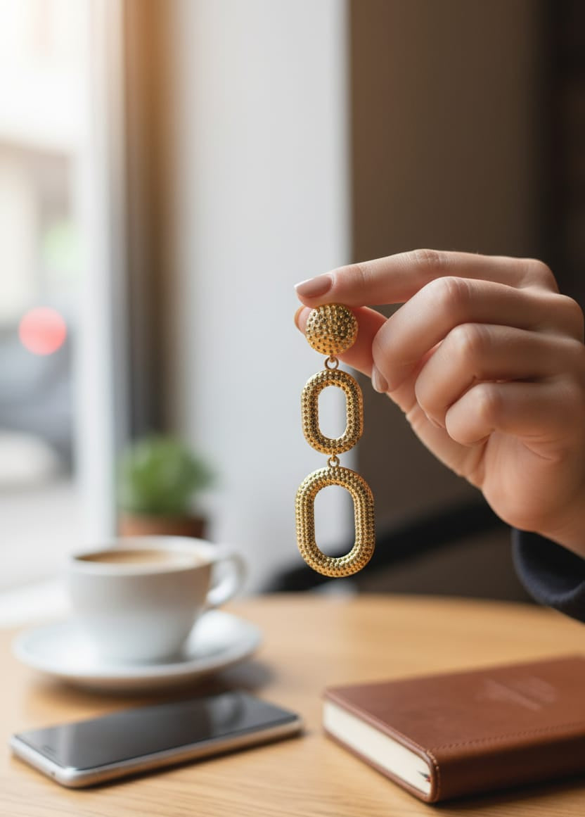 Turn every head in the room with these gold-toned anti-tarnish triple linked oval statement earrings, designed to add bold elegance and high-fashion drama to your look. Featuring a stunning three-tier linked design—a textured round stud followed by two elongated oval drops—these earrings combine modern geometry with luxe detailing.