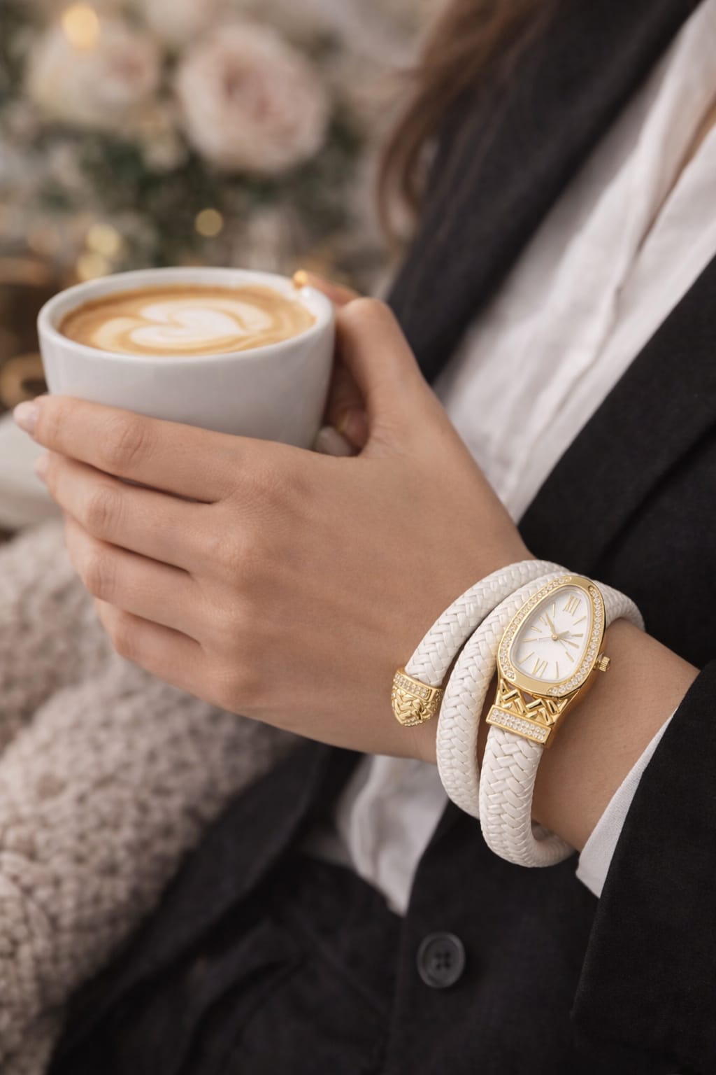Bold elegance meets modern luxury in the Noir Serpent White Dual-Wrap Bracelet Watch. Designed with a sleek black braided snake-style bracelet, this statement timepiece wraps gracefully around the wrist, creating the look of layered jewellery with the function of a watch.