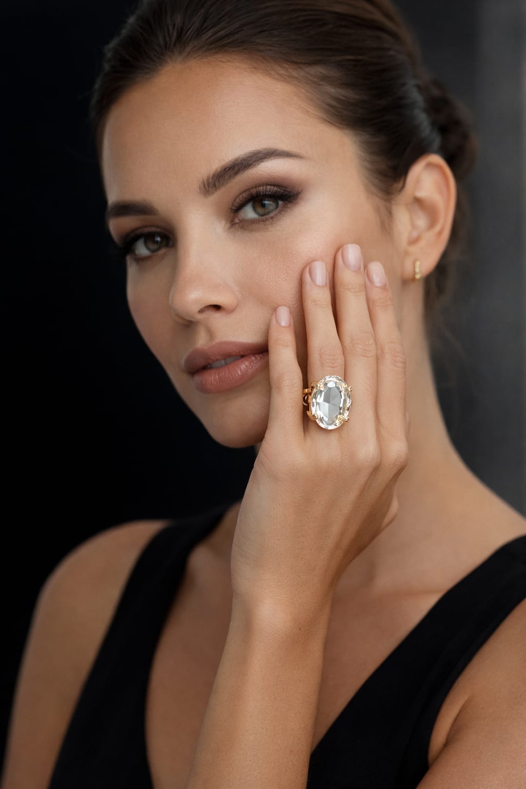 Oval Solitaire Adjustable Gold Ring – Anti Tarnish Statement Crystal Ring for Women