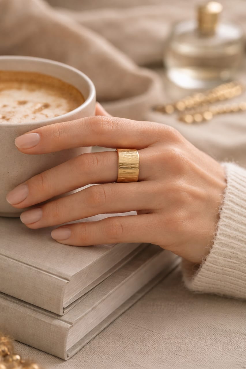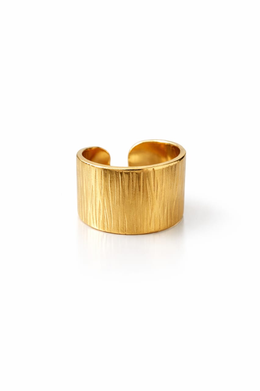 Make a bold yet minimal statement with this Textured Gold Adjustable Statement Ring for Women. Designed with a wide band and elegant brushed texture, this ring delivers a modern, refined look that complements both casual and elevated outfits.