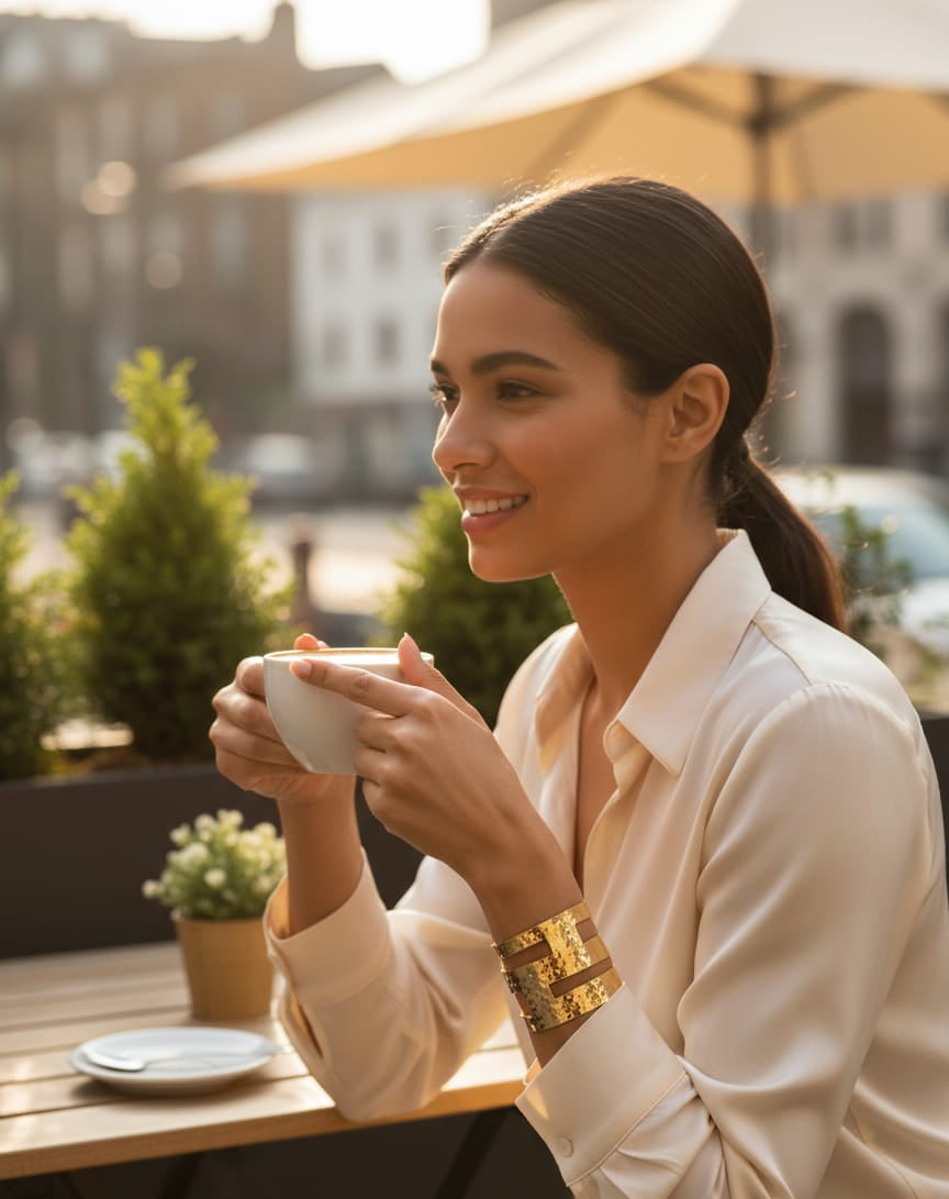 Anti-tarnish | Adjustable fit | Wide statement cuff | Skin-friendly | Modern luxury design